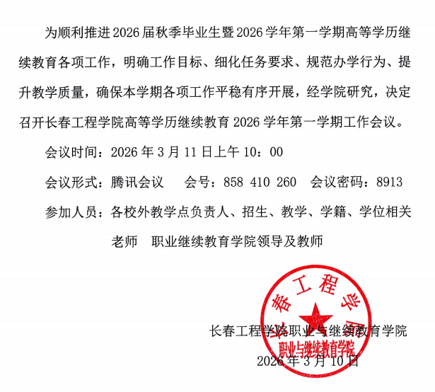 关于召开长春工程学院高等学历继续教育2026学年第一学期工作会议的通知